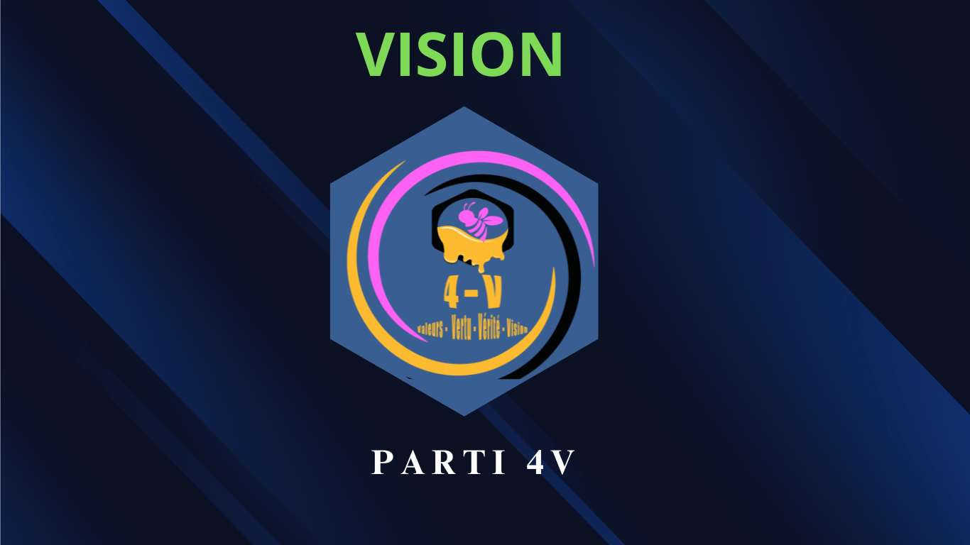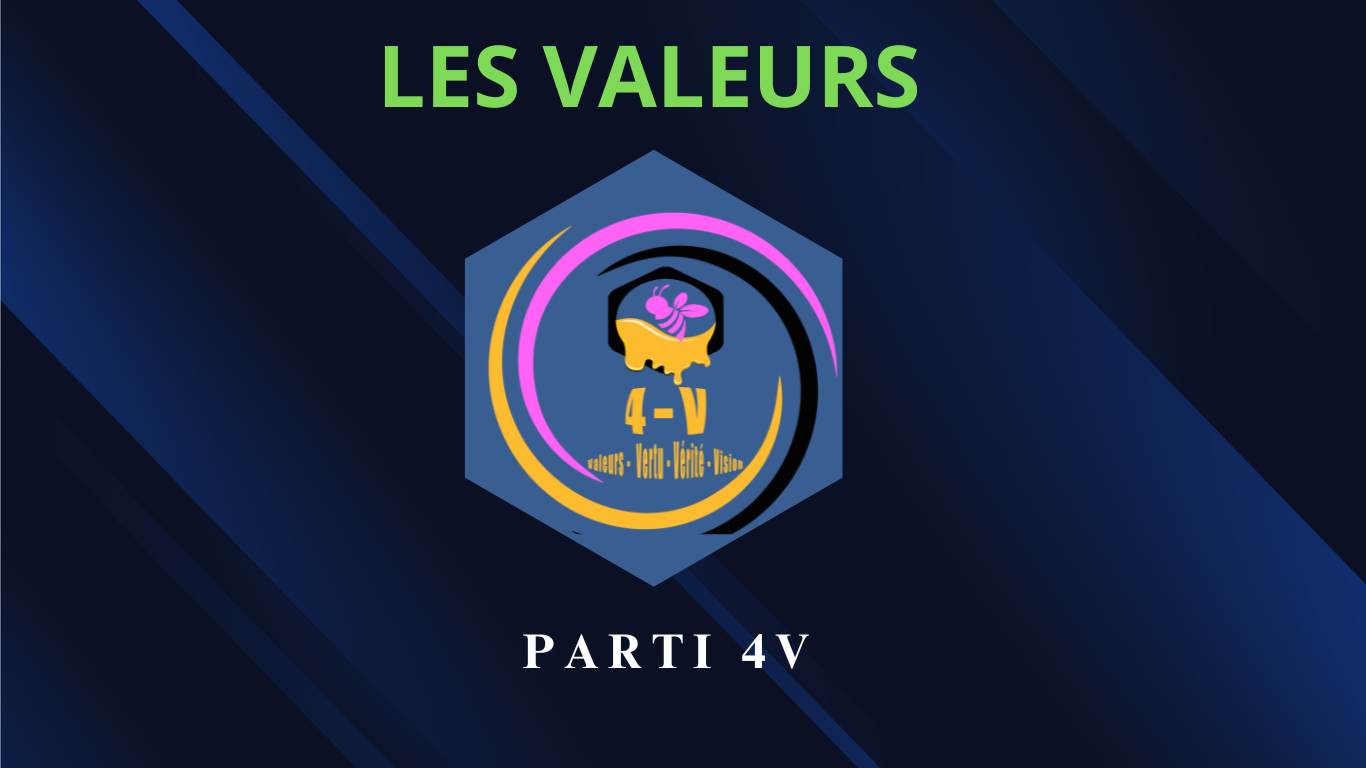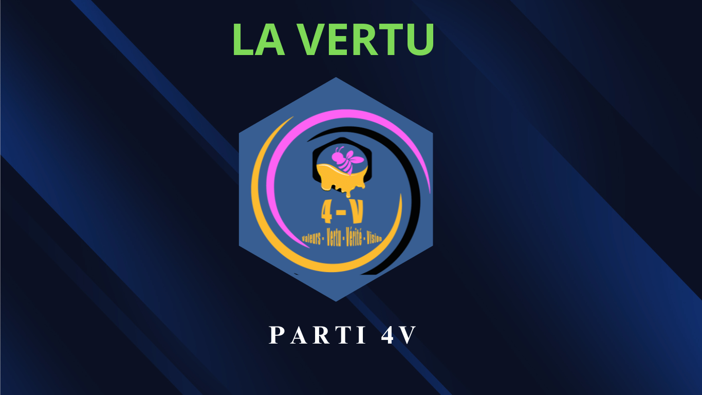 Nous restons fermes sur nos valeurs fondamentales :Les 4 V – Valeurs, Vertu, Vérité, Vision – . Avec ces principes, nous pouvons construire ensemble un monde plus juste.